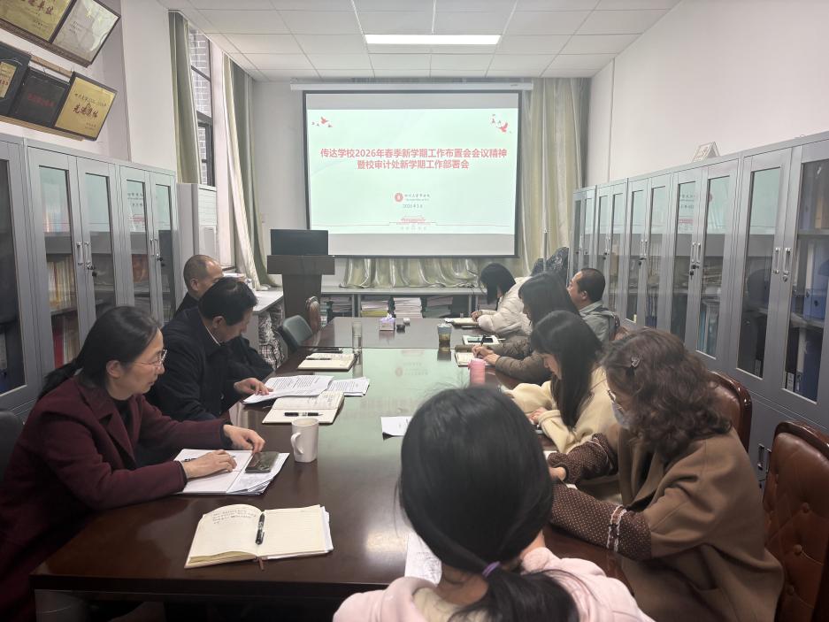 2026年3月16日下午3:00,校审计处召开2026年春季新学期工作部署会,会议由党支部书记、处长李晓峰主持,审计处全体人员参加。